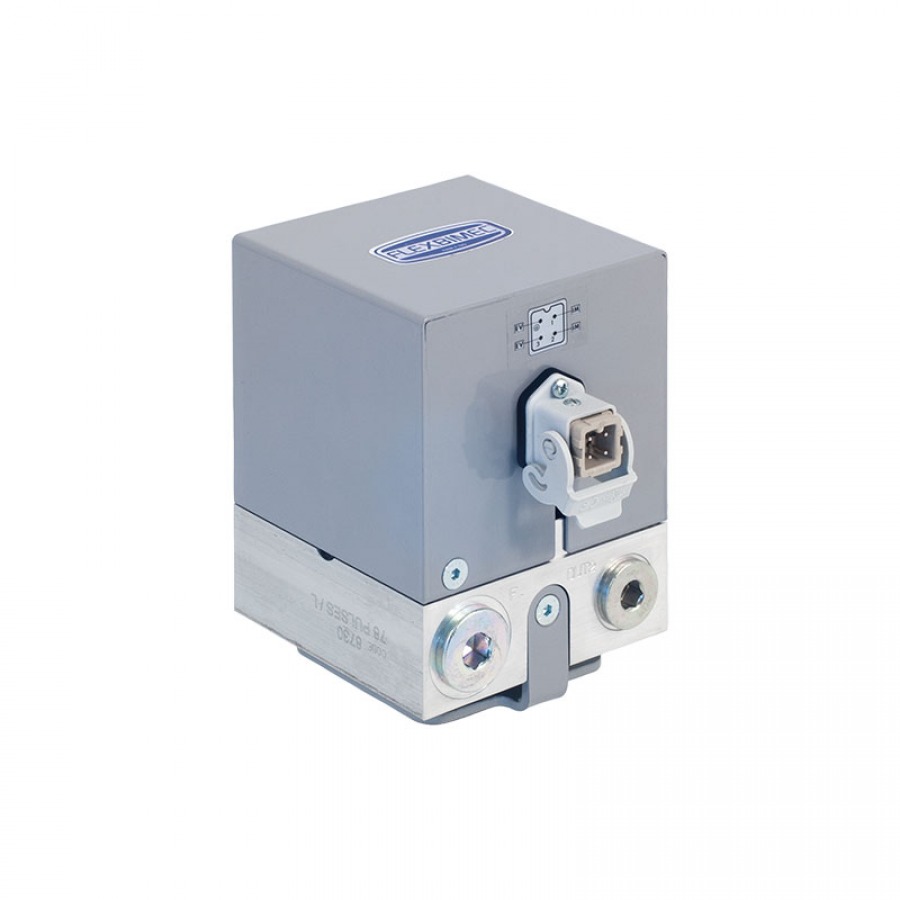 El caudalímetro electrónico de engranajes ovalados con transmisor de pulsos, diseñado para medir con alta repetibilidad el consumo de aceite, diésel y anticongelante. El conjunto incluye electroválvula 24 VDC, filtro en línea de 125 μm y soporte mural.